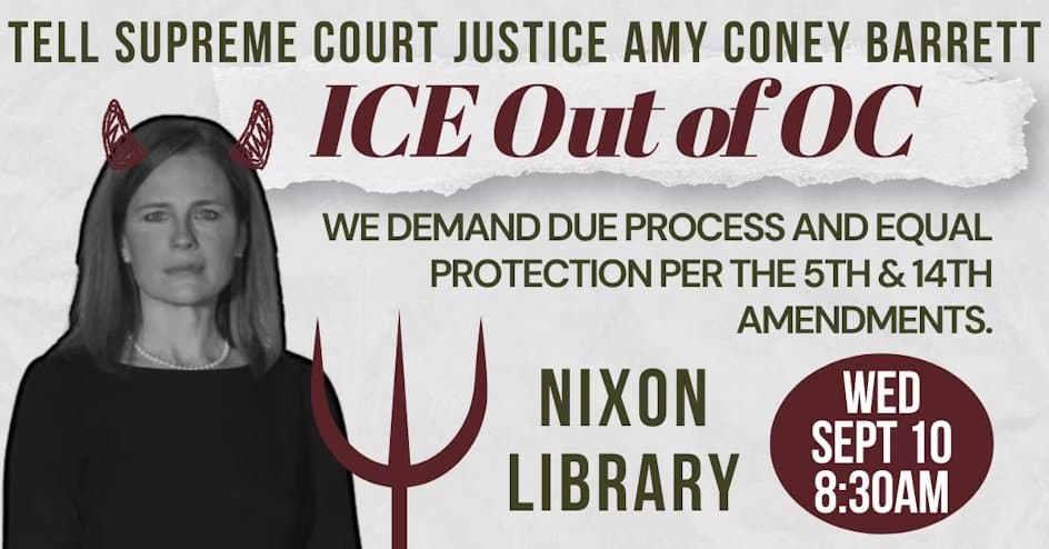 Wednesday, September 10th outside on the sidewalk of the Nixon Library from 8:30 to 10:30am Protest Supreme Court Justice Amy Coney Barrett […]